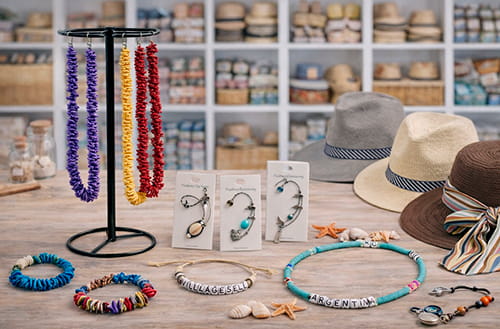Pulseras, collares, tobilleras, sombreros y accesorios de moda para revender.
