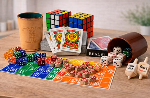 Naipes, cubiletes, dados y juegos clásicos para todas las edades.